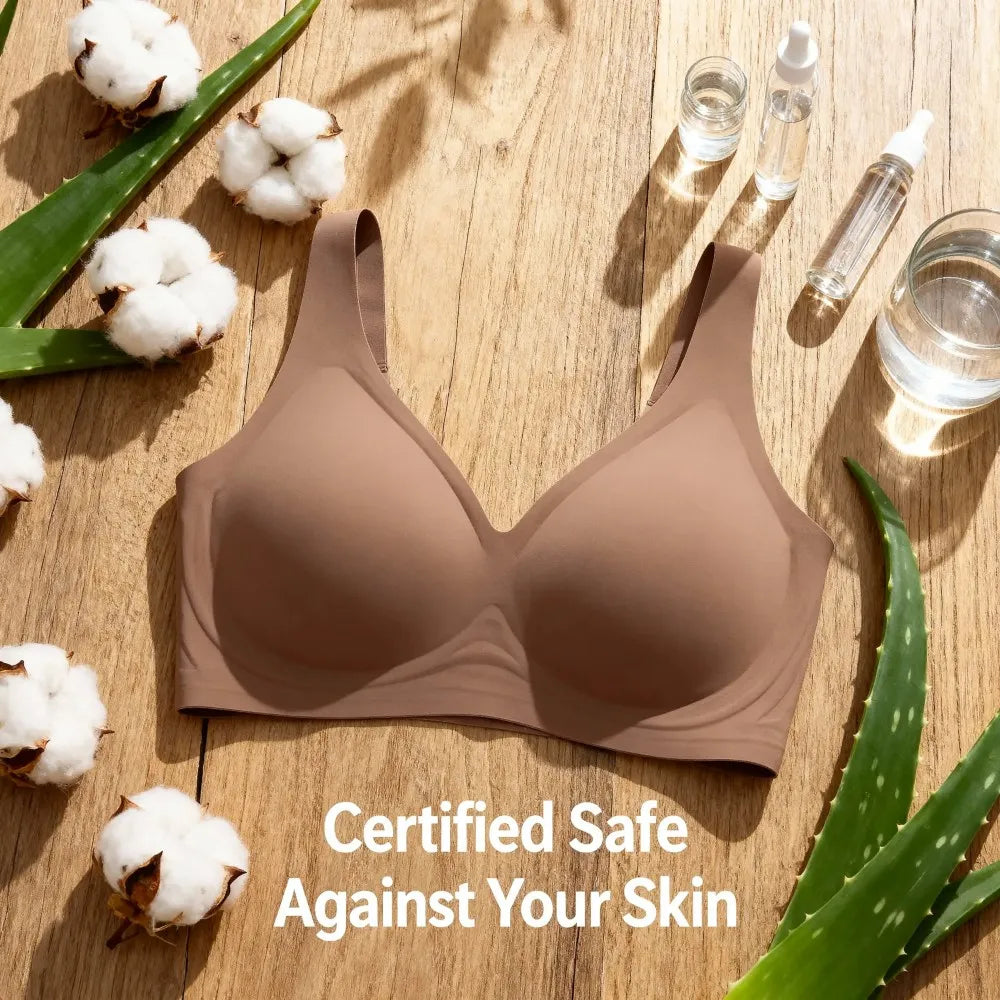 Our OEKO-TEX certified fabrics are completely free from BPA, PFAS "forever chemicals," and the 100+ harmful substances found in conventional bras. Just pure, breathable, skin-safe materials that work with your body's natural chemistry—not against it.
